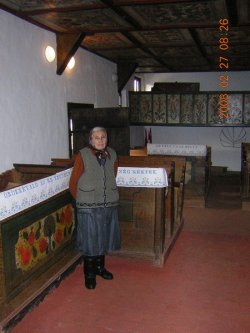Erzsike néni is a guide of the Reformist Church of Tákos located in the Upper